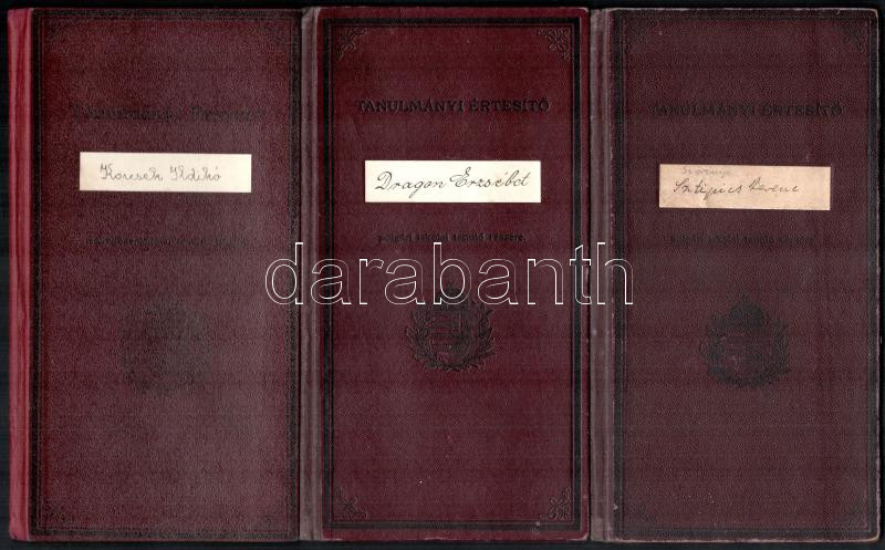 cca 1930-40 10 db okmány, többségében iskolai bizonyítvány és egy fényképes személyazonossági igazolvány, utóbbi sérült<a href="https://www.darabanth.com/hu/gyorsarveres/440/kategoriak~Mutargy-papirregiseg-egyeb/Okmanyok~500020/cca-1930-40-10-db-okm