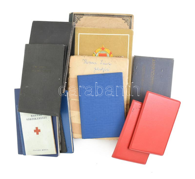 cca 1930-95 19 db okmány: Fényképes kisipari szövetkezeti tagsági igazolvány, Magyar Köztársaság vezetői engedély, Magyar Köztársaság fényképes kék útlevél, stb. részben sérült és foltos<a href="https://www.darabanth.com/hu/gyorsarveres/440/kategori
