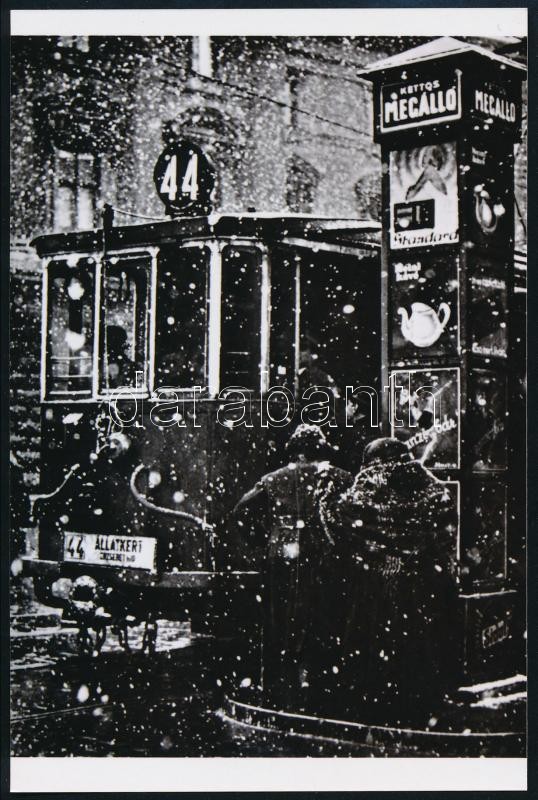 cca 1930 Budapest, a 44-es villamos hóesésben, Fekete György gyűjteményéből 1 db mai nagyítás, 15×10 cm<a href="https://www.darabanth.com/hu/gyorsarveres/419/kategoriak~Fotomuveszet/Foto~500023/cca-1930-Budapest-a-44-es-villamos-hoesesben-Fekete-Gyo