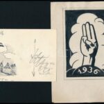16693. tétel:Bálint Endre (1915-1986): André Balint. 14 december - 10 januari 1958, Galerie Espace N.V. Klein Heilingland 36, Haarlem. Kiállítási plakát. Litográfia, papír. Jelzés nélkül. Bálint Endre 1958-ban rendezett hollandiai egyéni kiállításának plakátja, saját illusztrációjával. Lapszéli apró sérülésekkel és javított szakadásokkal. 59,5×46 cm. Ritka!