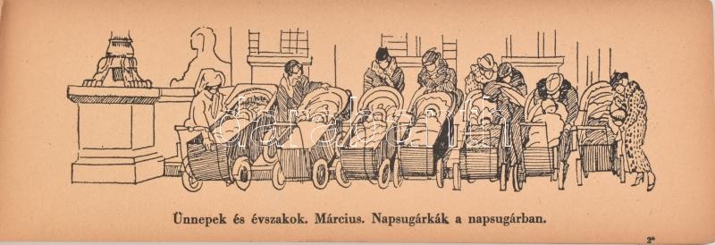 cca 1930 Mühlbeck Károly vidám fejlécei. Bp., Új Idők. Kiadói zsinórfűzéses, haránt-alakú papírkötésben, foltos, szakadt borítóval, a borítón, a címlapon és az elősző lapján hiánnyal.