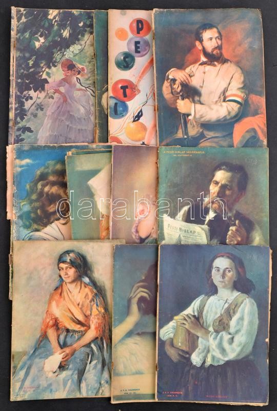 cca 1931-1934 Pesti Hírlap Vasárnapja 12 száma, szakadozott borítókkal<a href="https://www.darabanth.com/hu/gyorsarveres/419/kategoriak~Mutargy-papirregiseg-egyeb/Nyomtatvanyok~1000002/cca-1931-1934-Pesti-Hirlap-Vasarnapja-12-szama-szakadozott-borit