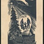 cca 1939-1940 Menyhárt József (1901-1976): 3 db alkalmi kisgrafika (karácsony, újév, gyermek születése), foltos állapotban, 13×11 cm és 18,5×10 cm között<a href="https://www.darabanth.com/hu/gyorsarveres/415/kategoriak~Festmenyek-es-grafikak/Ex-libr