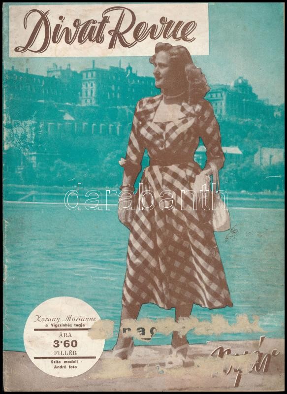 cca 1940 Divat Revue újság egy száma. Szerk.: Pekáry Dagmár. Rajzolta: Rév Éva. Bp., Légrády, 8 sztl. lev. Foltos borítóval, és borítón címkenyommal, az utolsó lapon szakadással.<a href="https://www.darabanth.com/hu/gyorsarveres/415/kategoriak~Mutar