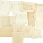 cca 1940 Kaesz Gyula (1897-1967): Lakás komplett bútorzatának terve 12 db eredeti ceruzás tervrajz, 35×30 cm-ig