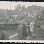 cca 1940 Siófok, Toldi harckocsi körül összegyűlt tömeg a városban, hátoldalán feliratozott fotó, 8,5×6 cm / WWII Hungarian Toldi tank in the town, photo, 8.5×6 cm<a href="https://www.darabanth.com/hu/gyorsarveres/421/kategoriak~Mutargy-papirregiseg