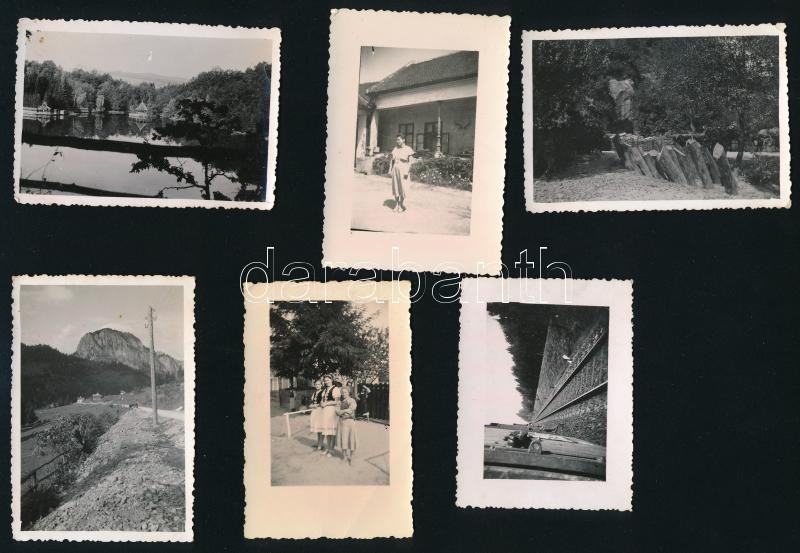 cca 1940 Vegyes fotó tétel, benne több katonai (repülőgép, bevonulás, stb.), kis fotóalbummal, 25 db, 6×8,5 cm