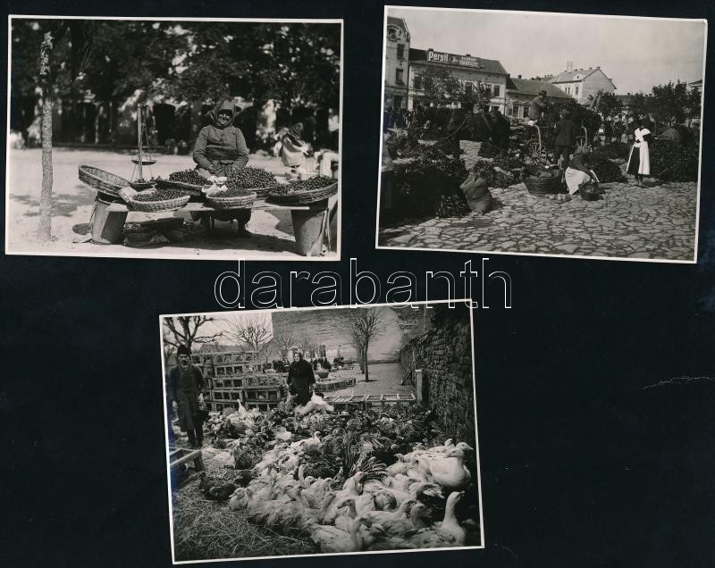 cca 1940 Vegyes néprajzi fotó tétel, 3 db, piaci életképek, hullámosak, 8×13 cm és 8×10 cm