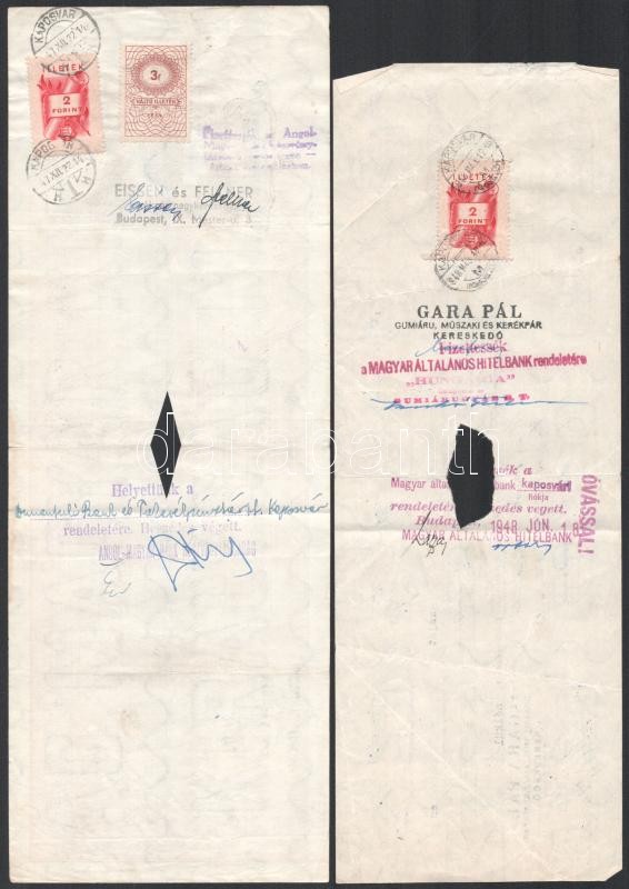 cca 1947-48, 4 db váltó, hátoldalán okmánybélyegekkel