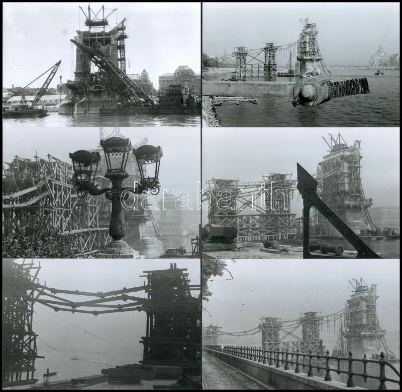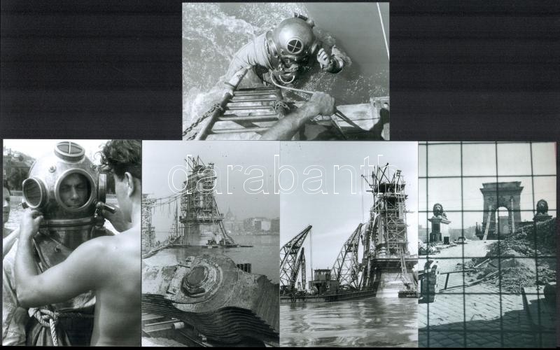cca 1947 Budapest, a Lánchíd romjainak kiemelése, a híd újjáépítése, nehézbúvárok a Dunában, Kotnyek Antal (1921-1990) budapesti fotóriporter hagyatékából 11db mai nagyítás, 10×15 cm<a href="https://www.darabanth.com/hu/gyorsarveres/415/kategoriak~F
