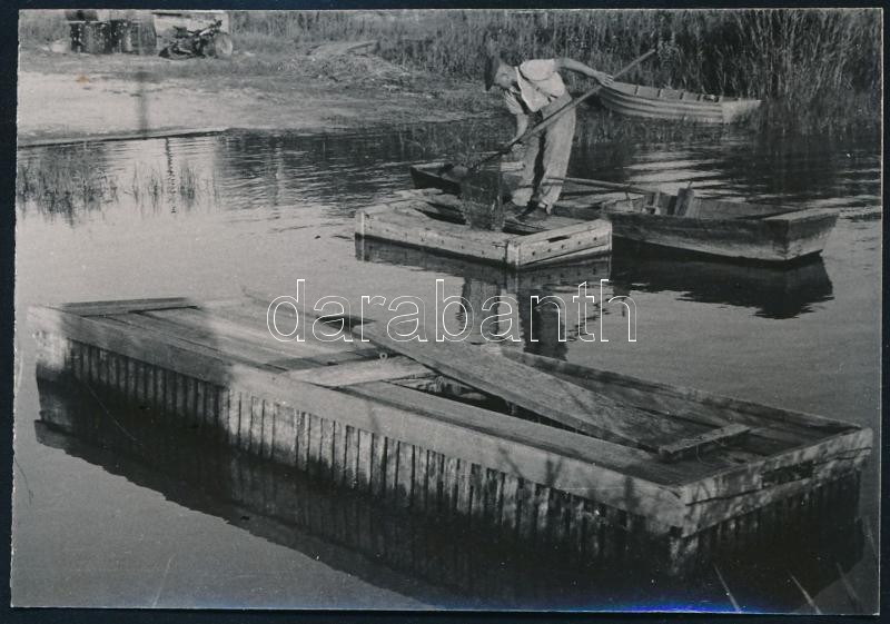 cca 1950-1960 Halász munka közben, Jónás Pál fotóriporter pecsétjével jelzett fotó, 11,5×8 cm<a href="https://www.darabanth.com/hu/gyorsarveres/417/kategoriak~Fotomuveszet/Foto~22/cca-1950-1960-Halasz-munka-kozben-Jonas-Pal-fotoriporter-pecsetjevel-