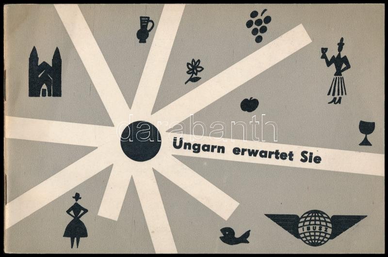 cca 1960-1970 Ungarn erwartet Sie, IBUSZ német nyelvű, képes turisztikai ismertető füzete, 68 p.<a href="https://www.darabanth.com/hu/gyorsarveres/417/kategoriak~Mutargy-papirregiseg-egyeb/Nyomtatvanyok~500002/cca-1960-1970-Ungarn-erwartet-Sie-IBUSZ