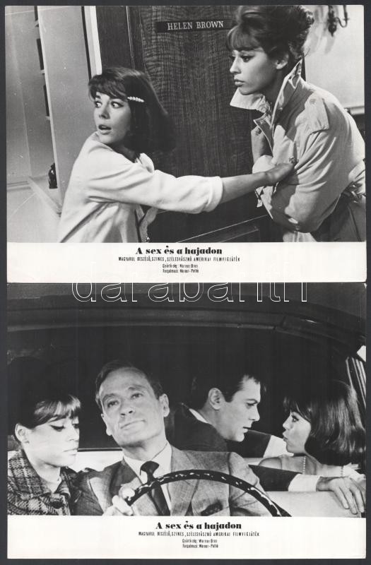 cca 1964 ,,A szex és a hajadon’ című amerikai film jelenetei és szereplői, 5 db vintage produkciós filmfotó (a használatból eredő kisebb hibákkal), ezüst zselatinos fotópapíron, 18×24 cm<a href="https://www.darabanth.com/hu/gyorsarveres/421/kategori