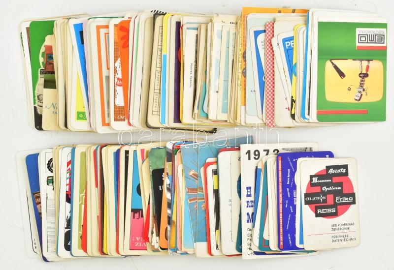 cca 1965-1991 kb. 350 db kártyanapár, többségében a 60-as/70-es évekből, vegyesen magyar és külföldi<a href="https://www.darabanth.com/hu/gyorsarveres/412/kategoriak~Mutargy-papirregiseg-egyeb/Reklam~500022/cca-1965-1991-kb-350-db-kartyanapar-tobbse