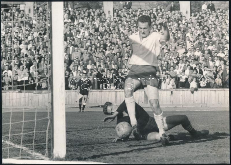 cca 1968 Albert Flórián (1941-2011), az FTC csatára a kapust kicselezve gólt lő, fotó, jó állapotban, 23×16 cm