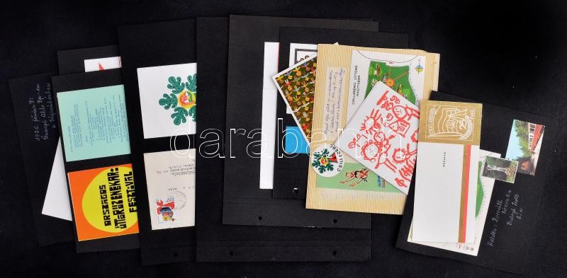 cca 1970-1980 Bp., a Csillebérci Úttörő Nagytáborral kapcsolatos összeállítás, meghívók, képek, stb., nagyobbrészt albumlapokra ragasztva