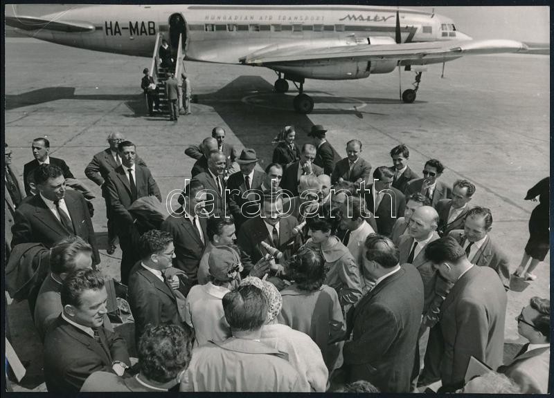 cca 1970-1980 Bp., brazil küldöttség a Ferihegyi repülőtéren, MTI sajtófotó, hátoldalán feliratozott, pecséttel jelzett (Vigovszki Ferenc felvétele), 18×13 cm<a href="https://www.darabanth.com/hu/gyorsarveres/421/kategoriak~Fotomuveszet/Foto~500021/
