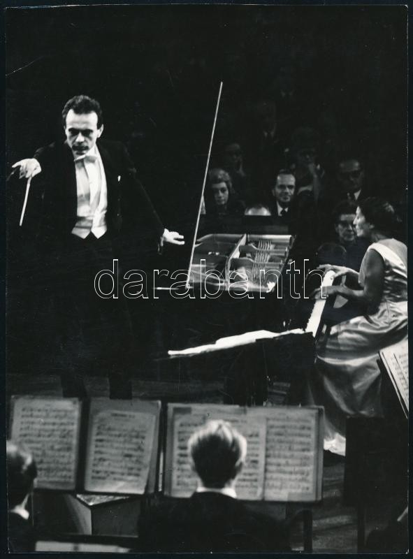 cca 1970-1980 Lorin Maazel amerikai karmester koncertet vezényel, a zongoránál Fischer Annie, hátoldalán feliratozott, pecséttel jelzett sajtófotó, Vámos László (1912-1983) felvétele, 22,5×16,5 cm<a href="https://www.darabanth.com/hu/gyorsarveres/41