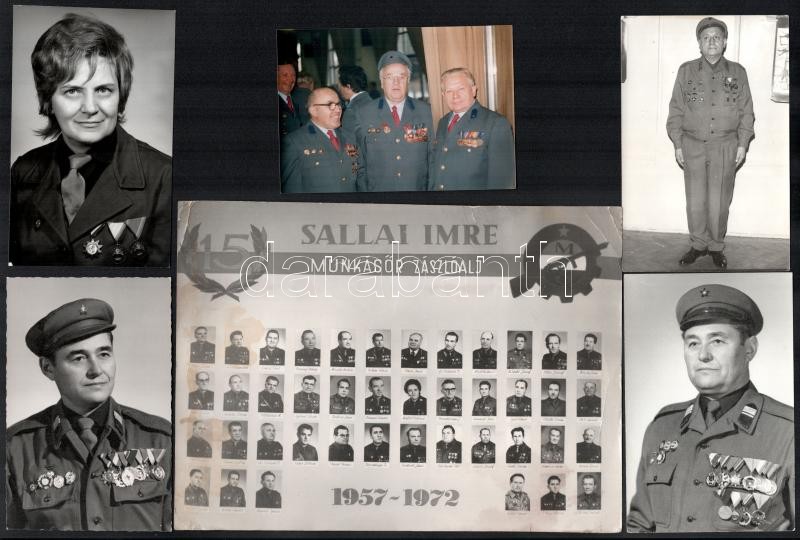 cca 1970-1989 Munkásőrséggel kapcsolatos fotók: mellképek kitüntetésekkel, csoportképek, tablófotó, összesen 11 db (közte néhány kissé sérült, foltos), 12,5×8,5 cm és 24×17,5 cm közötti méretben<a href="https://www.darabanth.com/hu/gyorsarveres/421/