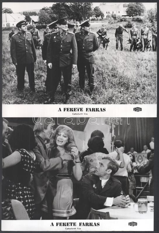 cca 1972 ,,A fekete farkas’ című csehszlovák film jelenetei és szereplői, 13 db vintage produkciós filmfotó, ezüst zselatinos fotópapíron, a használatból eredő kisebb hibákkal, 18×24 cm<a href="https://www.darabanth.com/hu/gyorsarveres/421/kategoria