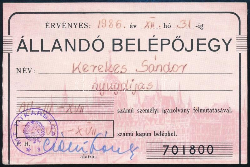 cca 1980-1990 Állandó belépő a Parlament épületébe