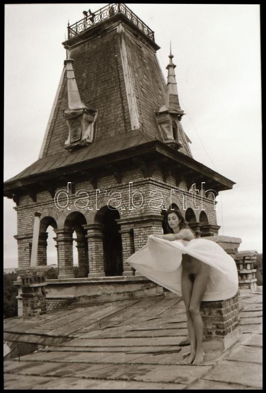 cca 1985 A csalafinta szél tudhatta, hogy bugyi nélkül sétálgat a kastély úrnője, 1 db vintage NEGATÍV Marinkay István (1920-?) veszprémi fotóművész hagyatékából, 24×36 mm<a href="https://www.darabanth.com/hu/gyorsarveres/417/kategoriak~Fotomuveszet