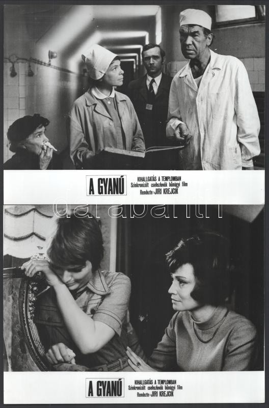 cca 1985 előtt, ,,A gyanú’ című csehszlovák bűnügyi film jelenetei és szereplői, 9 db vintage produkciós filmfotó, ezüst zselatinos fotópapíron, 18×24 cm<a href="https://www.darabanth.com/hu/gyorsarveres/419/kategoriak~Fotomuveszet/Foto~500023/cca-1