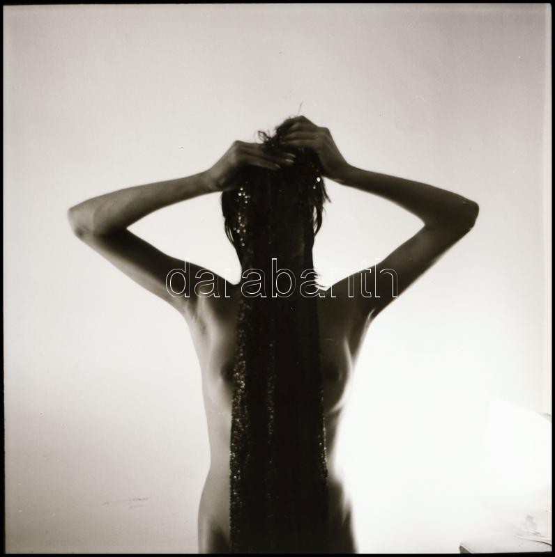 cca 1993 előtt készült felvételek, Menesdorfer Lajos (1941-2005) budapesti fotóművész hagyatékából, 7 db jelzés nélküli vintage fotó és/vagy NEGATÍV az aktfényképezés műfajából, a papírképek és a negatívok között nincs összefüggés, 6×6 cm és 7,6×8,7 cm kö