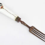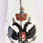 cca XVIII. sz. – XIX. sz. eleje, a Szent András-rend jelvényét (rendjelét) ábrázoló porcelán nyelű villa. Antik fém villa, fehér mázas porcelán nyéllel, amelyre kézzel a Szent András-rend jelvényének ábrázolását festették: egyik oldalon az Orosz Birodalom címerén megjelenő kétfejű sas, a másikon a keresztre feszített Szent András ábrázolásával. Korának megfelelő állapotban, fém része kissé rozsdás, a nyélen középen végigfutó törésvonallal, illetve egy kisebb repedéssel, jelzés nélkül, h: 20 cm. Szent András-rend (Az Első Meghívott Apostol Szent András Rendje): Az Orosz Birodalom elsőként alapított, legmagasabb rendje; I. (Nagy) Péter orosz cár alapította 1698-ban, Szent András apostolnak, Oroszország védőszentjének szentelve. A kitüntetésnek csak egy osztálya volt, és kizárólag a legkiválóbb polgárok és katonák kaphatták meg. Maga az alapító, Nagy Péter csak 1703-ban vette át a rend jelvényét, így csak a rend hetedik lovagja