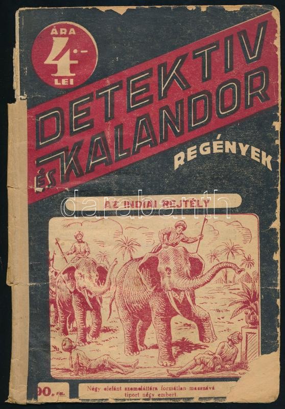 Charly Brand: Az indiai rejtély. Detektív és kalandor regények. Bp., é.n. (1933 körül), Müller D. Kiadói papírkötés, sérült, megviselt állapotban<a href="https://www.darabanth.com/hu/gyorsarveres/411/kategoriak~Konyvek/Konyvek-Egyeb-ritkasagok~15000