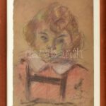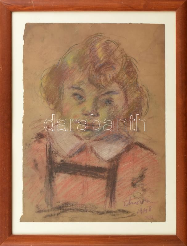 Chiovini Ferenc (1899-1981): Kislány portré 1948. Pasztell, papír, jelzett, keretben, vágott papír 35×25 cm<a href="https://www.darabanth.com/hu/gyorsarveres/417/kategoriak~Festmenyek-es-grafikak/Festmenyek-es-grafikak~1/Chiovini-Ferenc-1899-1981-Ki