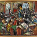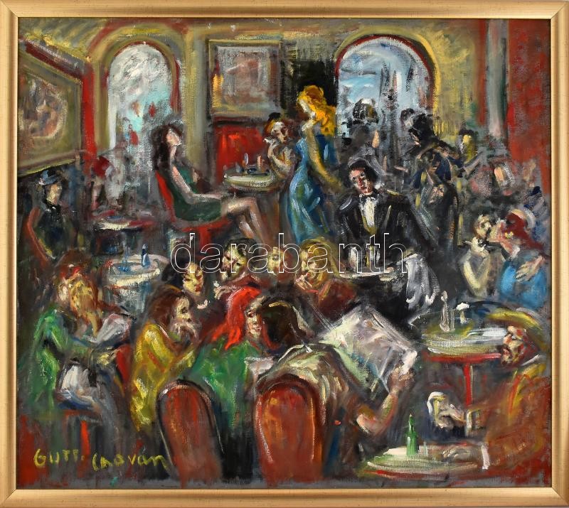 Chovan Lóránt (1913-2007): Mulatozó társaság. Olaj, vászon, jelzett. Dekoratív fa keretben, 70×80 cm<a href="https://www.darabanth.com/hu/gyorsarveres/414/kategoriak~Festmenyek-es-grafikak/Festmenyek-es-grafikak~500001/Chovan-Lorant-1913-2007-Mulato