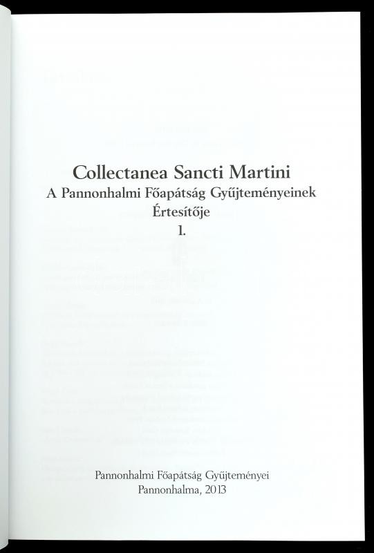 Collectanea Sancti Martini. A Pannonhalmi Főapátság Gyűjteményeinek Értesítője. I. köt. Szerk.: Dénesi Tamás, Dejcsics Konrád. Pannonhalma, 2013, Pannonhalmi Főapátság Gyűjteményei. Kiadói papírkötés.
