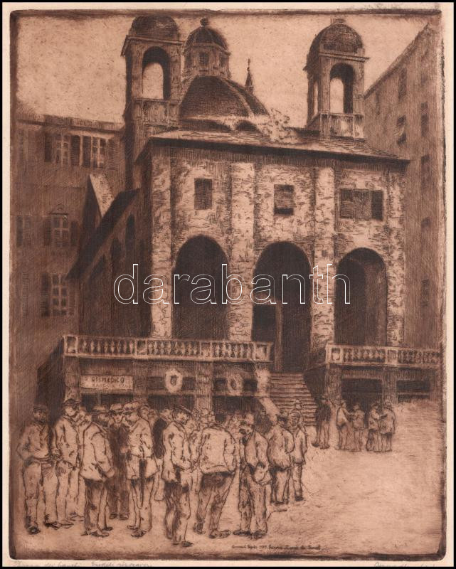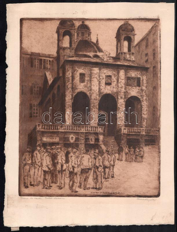 Conrád Gyula (1877-1959): Genova, Piazza dei Bianchi. Rézkarc, papír, jelzett. 29,5×23,5 cm<a href="https://www.darabanth.com/hu/gyorsarveres/435/kategoriak~Festmenyek-es-grafikak/Festmenyek-es-grafikak~500001/Conrad-Gyula-1877-1959-Genova-Piazza-de