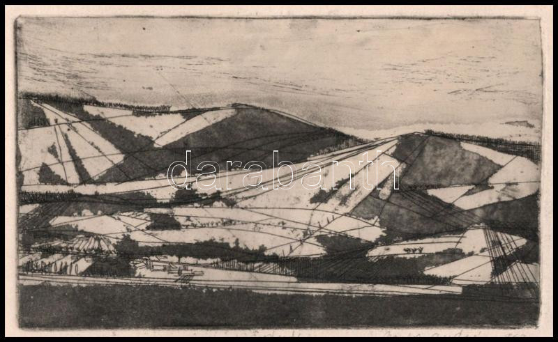 Csavlek András (1942-): Dunakanyar. Rézkarc, papír. 8×13 cm Jelzett<a href="https://www.darabanth.com/hu/gyorsarveres/428/kategoriak~Festmenyek-es-grafikak/Festmenyek-es-grafikak~500001/Csavlek-Andras-1942-Dunakanyar-Rezkarc-papir-8×13-cm-Jelzett~II