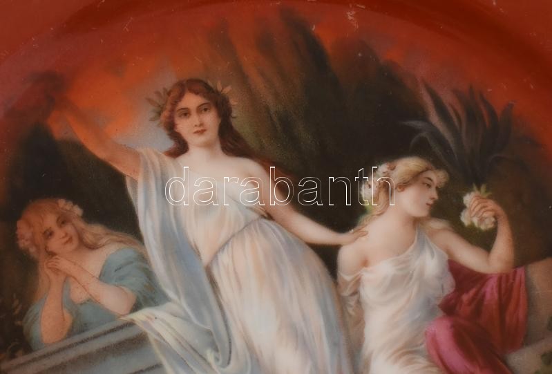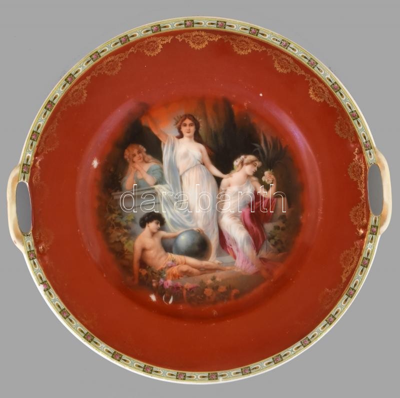 Cseh alt Wien porcelán füles tálca matricás jelzett kopással 26cm