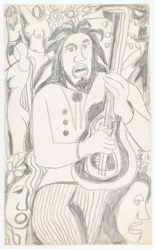 Csepeli Németh Miklós (1934-2012): Női akt gitárossal, 1984. Ceruza, papír, jelzett, törésnyomokkal, 49,5×30 cm<a href="https://www.darabanth.com/hu/gyorsarveres/428/kategoriak~Festmenyek-es-grafikak/Festmenyek-es-grafikak~500001/Csepeli-Nemeth-Mikl