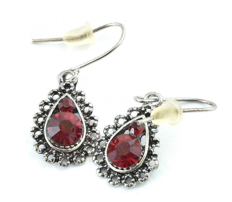 Csepp alakú bizsu fülbevalópár, szép állapotban, h: 2 cm