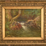 Csíky Sándor (?-1976): Patakpart. Olaj, vászon, jelzett, kissé sérült fa keretben. Kis felületi sérüléssel 20×28 cm