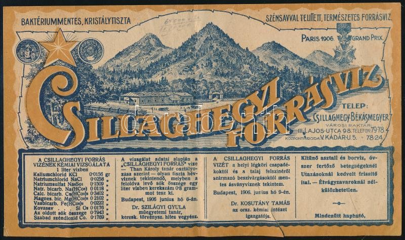 Csillaghegyi forrásvíz reklámlap, szakadással