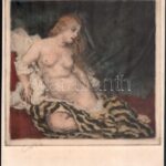 Csók István (1865-1961) – Prihoda István (1891-1956): Thámár (akt). Rézkarc, papír, jelzett (Csók I.), 22×23 cm<a href="https://www.darabanth.com/hu/gyorsarveres/427/kategoriak~Festmenyek-es-grafikak/Festmenyek-es-grafikak~500001/Csok-Istvan-1865-19