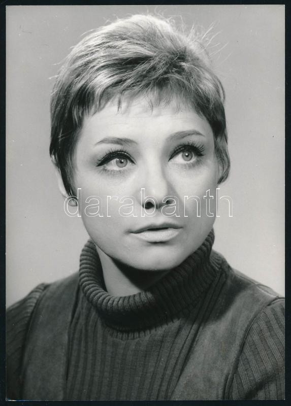 Csűrös Karola színésznő, Keleti Éva felvétele, hátoldalon feliratozott sajtófotó, utólagos előhívás, 18×13 cm<a href="https://www.darabanth.com/hu/gyorsarveres/419/kategoriak~Fotomuveszet/Foto~500023/Csuros-Karola-szineszno-Keleti-Eva-felvetele-hato