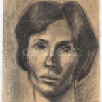 Czigány jelzéssel: Női portré. Szén, papír, kissé sérült (törésnyomokkal). 43×30,5 cm