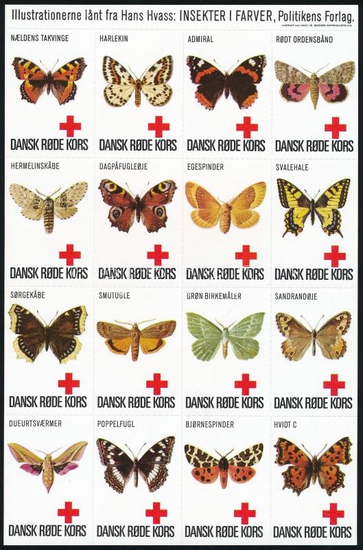 Dánia Vöröskereszt – Lepkék 16-os levélzáró ív