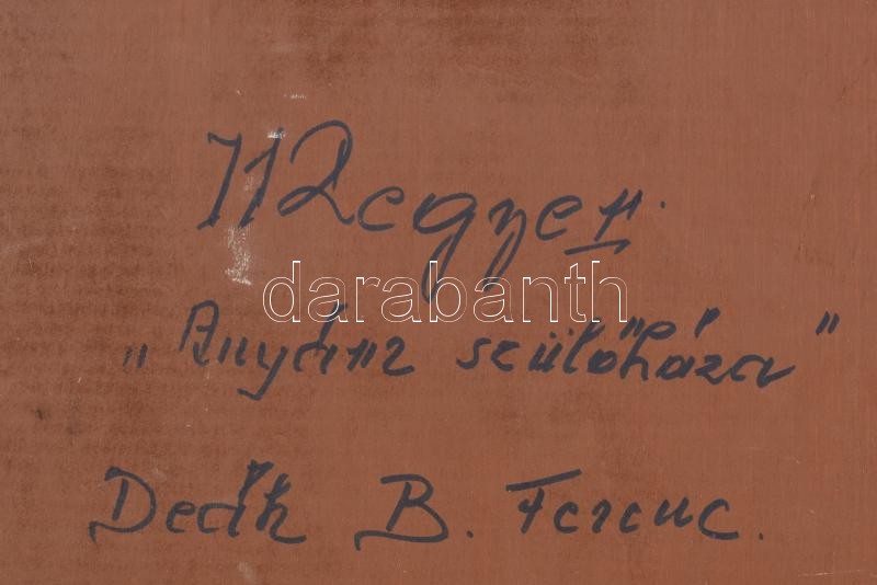 Deák B. Ferenc (1938-2004): Anyám szülőháza. Olaj, fa. Jelzett. Hátoldalán autográf felirattal. Dekoratív fakeretben. 30×40 cm<a href="https://www.darabanth.com/hu/gyorsarveres/426/kategoriak~Festmenyek-es-grafikak/Festmenyek-es-grafikak~500001/Deak