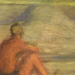 Diener-Dénes Rudolf (1889-1956): Francia tengerpart. Pasztell, papír, jelezve jobbra lent. Üvegezett fa keretben, 18,5×28,5 cm / Rudolf Diener-Dénes (1889-1956): Beach in France. Pastell on paper, signed lower right. Framed with glass. 18,5×28,5 cm.