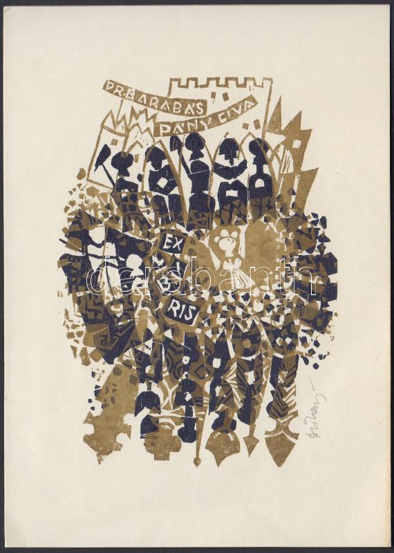 Diskay Lenke (1924-1980): Ex libris Dr. Barabás Pány Éva. Színes fametszet, papír, jelzett, 11×9 cm<a href="https://www.darabanth.com/hu/gyorsarveres/417/kategoriak~Festmenyek-es-grafikak/Ex-libris-es-kisgrafika~3/Diskay-Lenke-1924-1980-Ex-libris-Dr