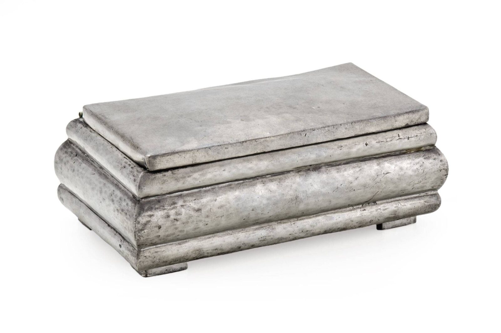 magyar, 20. század első fele, trébelt ón, fa belső résszel, 6*16*9,5 cm
