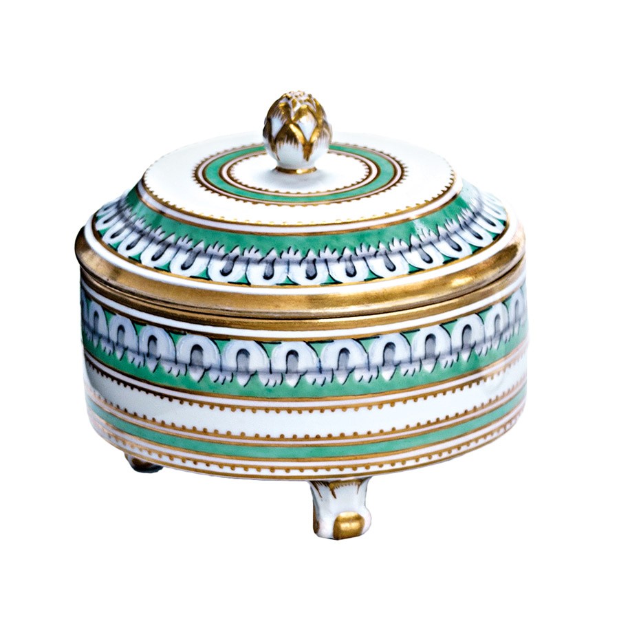 Bécs, 1828, festett, aranyozott porcelán, alján máz alatti kék jelzet és 28-as benyomott számozás, 7, 5*8, 5 cm