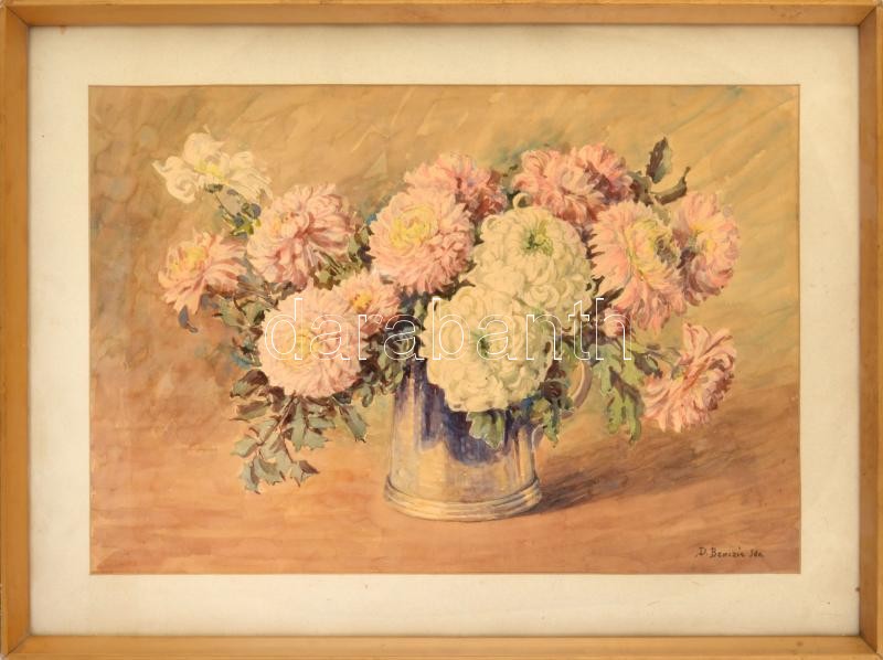 Dolányi Benczúr Ida (1876-1970): Csendélet. Akvarell, papír. Jelzett. Dekoratív, üvegezett, kissé sérült fakeretben, 49×71 cm.